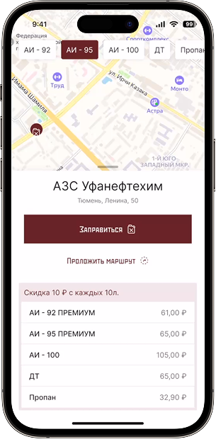 Заправиться можно на тех АЗС, которые отображаются на карте в приложении.